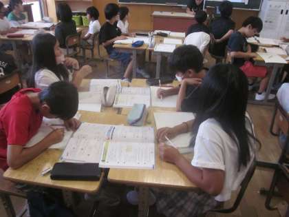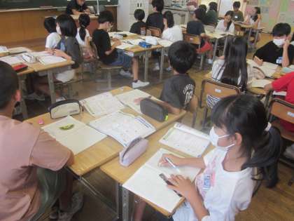 どうしたら簡単に公倍数を見付けることができるのかをグループで考えています。