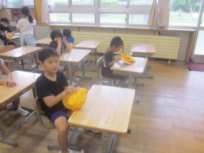 安全ピンが小さくてつけにくかったようですが、無事つけ終わりました。