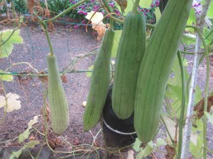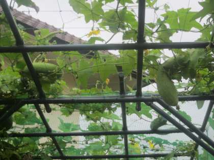 ヘチマ棚の上にも実ができています。