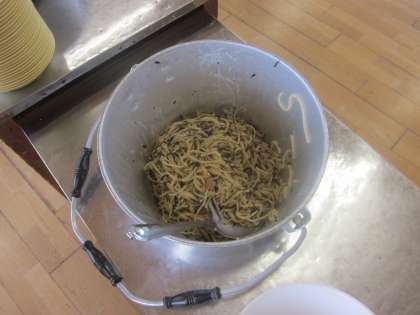 スパゲッティを見て喜んでいました。