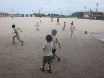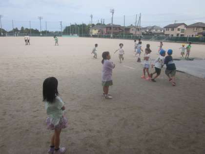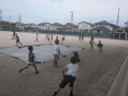 グラウンドでこおり鬼です。