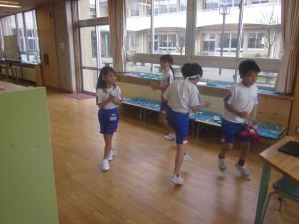 グループごとに動画を見ながら、リズムダンスをしました。