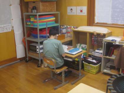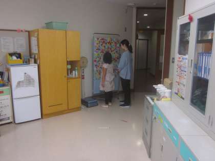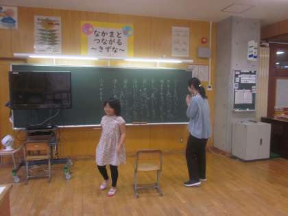 ・保健室に行って好きな食べ物を伝えました。保健の先生が黒板を見に来てくださいました。