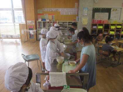 1年生も手際よく配膳しています。 上手になりましたね。