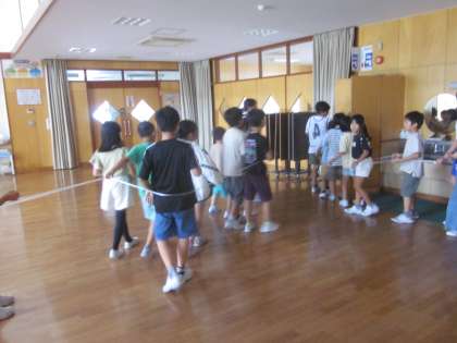 みんなでロープの輪に入り、なかよく食材探しです