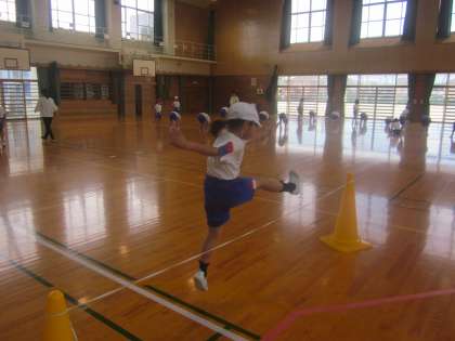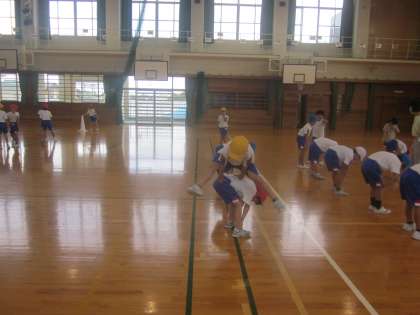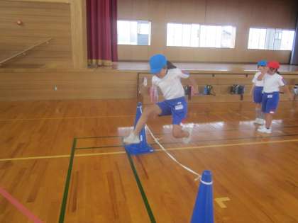馬跳びと高跳びの練習です。