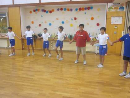 今日はマイムマイムの曲に合わせてフォークダンスをしました。