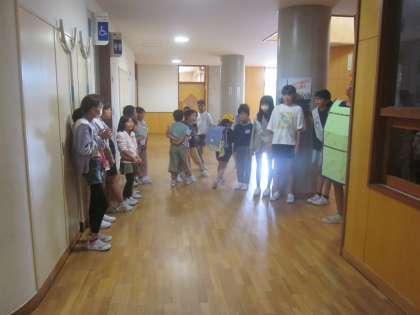 今日も3年生の子供たちがボランティアであいさつ運動に参加しています。