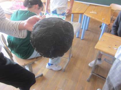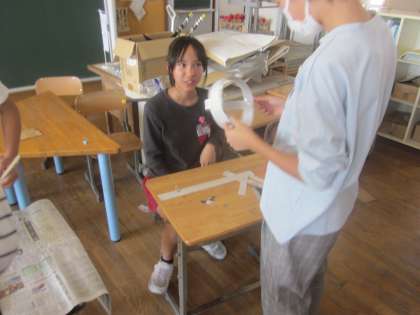 6年生は学習発表会の小道具「かつら」をつくっていました。