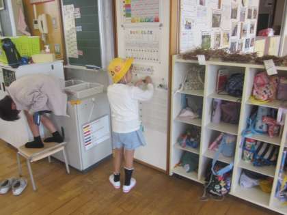 一人一仕事をてきぱきと行い、素早く帰りの準備しています。