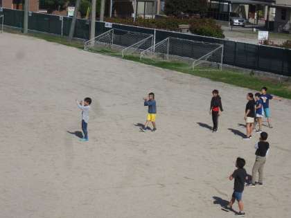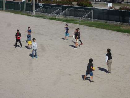 図工の作品作りの続きをしたり、ドッジボールをしたりして楽しんでいます。