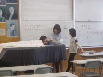 2学期に演奏する「君を乗せて」の楽器の担当を決めました。