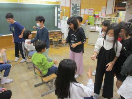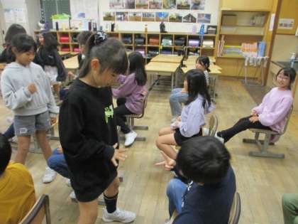 「クラスの仲をもっと深めよう」をめあてに、お絵かきリレーや、じゃんけんピラミッドをして楽しみました。