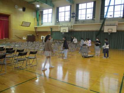 明日の発表会に向けて、会場の準備をしました。がんばってくれた6年生さん、ありがとう。