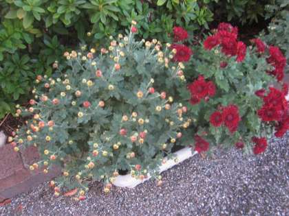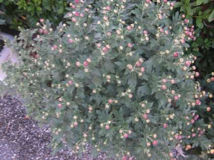 4つのプランターのすべての菊につぼみが出てきました。