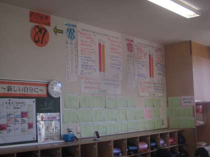 学級目標に近付いているか振り返りました。 何%だったのでしょうか。
