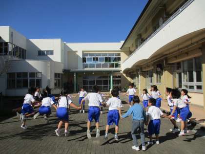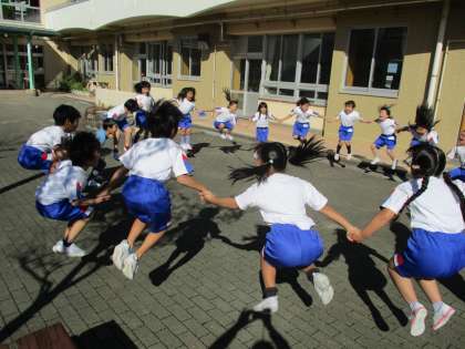 国語科で学習している「くじらぐも」で、子供たちがくじらぐもに飛び乗る場面を、みんなで体験しました。実際にやってみることで、掛け声の出し方を工夫することができました。