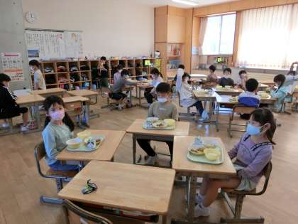 給食の配膳も上手になりました。配膳も静かに待っています。