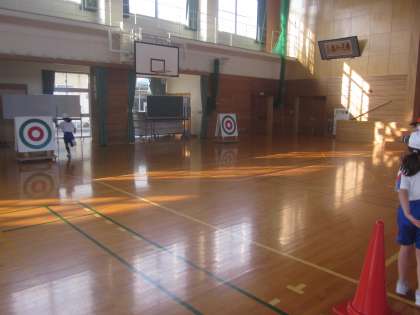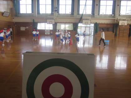 的を狙って投げます。