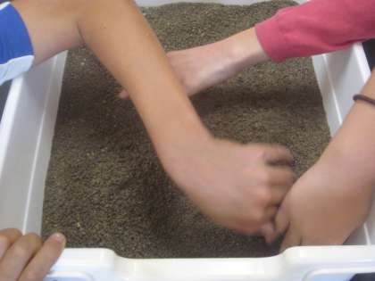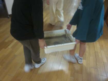 水の流れ方や水が流れると土地がどうなるのかを実験しました。