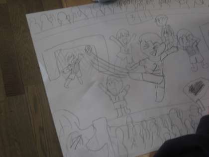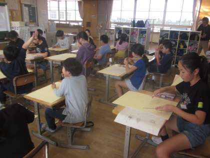 心に残った思い出を絵に表します。 今日は画用紙に下絵を描きました。