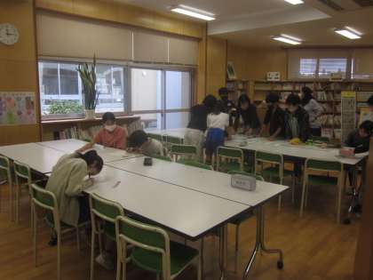 図書委員会は、読書のしおりの配付準備をしました。