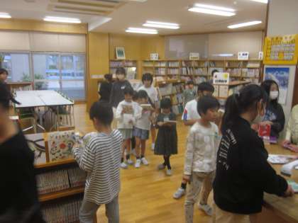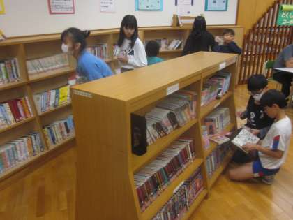 週末に向けてたくさんの子供たちが本を借りに来ています。