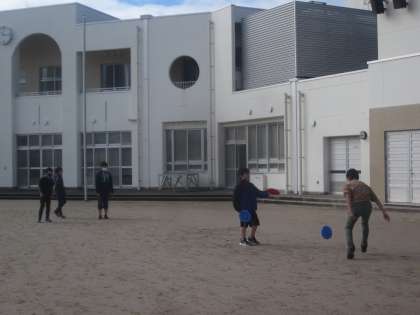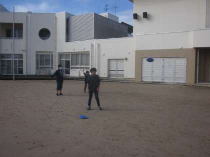 大休憩に6年生の子供たちが、フライングディスクを使って遊んでいました。