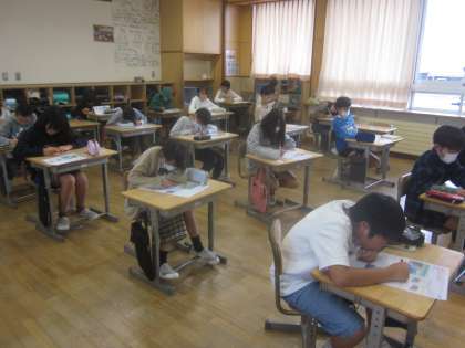 理科、算数のテストをしています。 しっかりと復習しましょう。