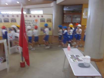 今日はグラウンド東側の民家が火事の想定で行いました。