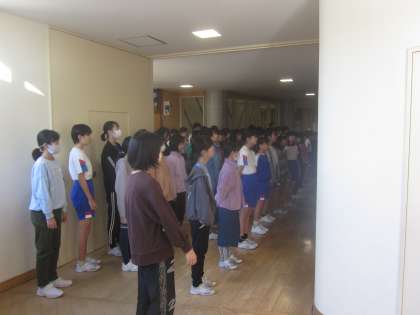 朝活動では、学習発表会で歌う歌練習をしています。 心を一つに歌い上げましょう。