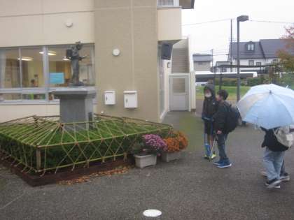 毎日、大広田っ子を見守ってくれている二宮尊徳さんに「行ってきます」をしています。
