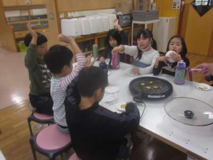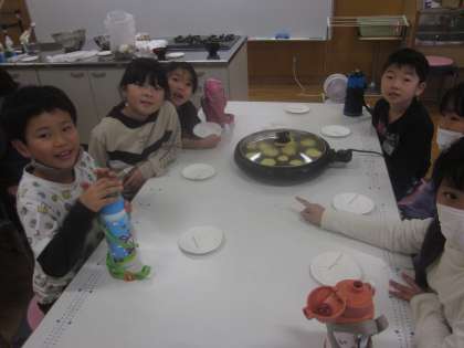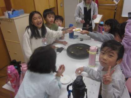 収穫したさつまいもをホットプレートで焼いていただきました。