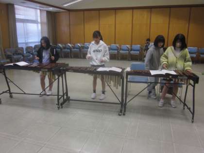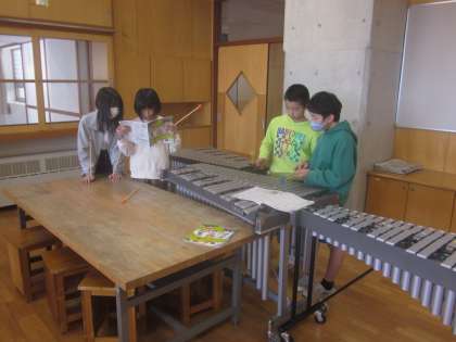 今日は木琴、鉄琴、鍵盤ハーモニカ等の学期ごとに分かれて練習しました。