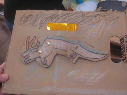 動く動物などをつくります。それをクロムブックで撮影し、コマ送りソフトを使ってアニメーションをつくります。