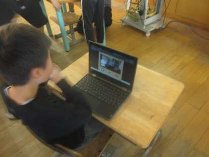 2組は身近にある小物や自分の顔をクロムブックで撮影してアニメーションをつくってみました。