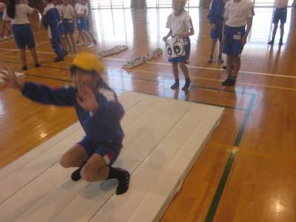 回るときは首をすぐに曲げ、足と足の間から後ろを見ます。