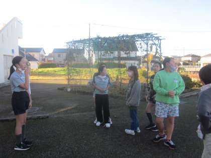 朝の時間に4年生の子供たちがヘチマを取りにきていました。