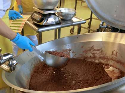 今日の献立は「ご飯、牛乳、野菜の肉まき、煮豆、大漁なべ、のり佃煮」でした。今日の煮豆は、金時豆でした。金時豆を水で戻して、茹でてから柔らかくなるまで、大きな回転釜で煮ました。給食室の手作りです。やさしい甘さでおいしくいただきました。