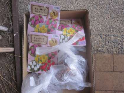 各学級花壇の花を抜き取り、パンジー、ビオラ、チューリップを植えます。