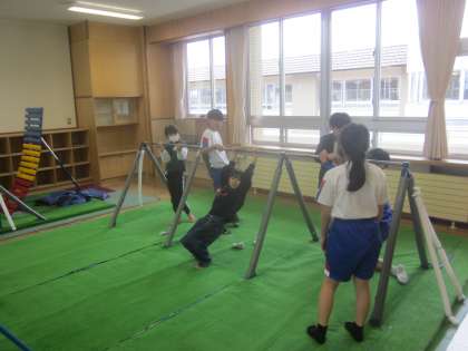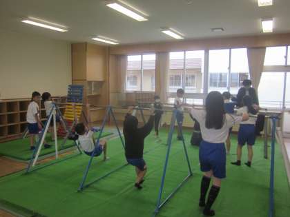 鉄棒ランドの様子です。 2年生と4年生がよく利用しています。