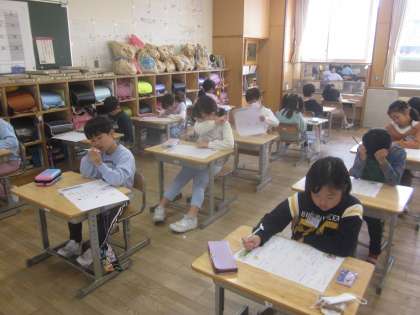 2年生も漢字テストやテスト直しに取り組んでいます。
