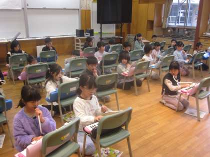 鍵盤ハーモニカで演奏しています。 先週よりも上手になりましたね。
