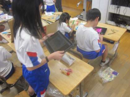 好きなキャラクターや動物などをつくり、クロムブックで撮影します。