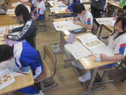 教科書に隠れているカタカナを探して、ノートに書きました。