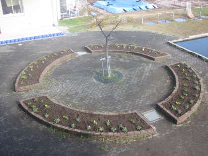 内側にはチューリップの球根が植えられています。