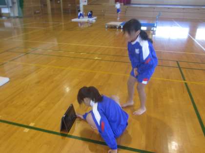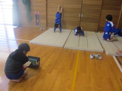 倒立前転や壁倒立での自分の動きを撮影しました。