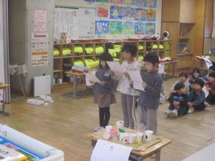 今日は2年1組を招待して「秋ランドへようこそ!」を開催しました。