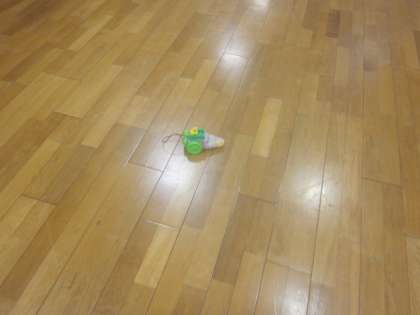 ランチルームで電気カーを走らせました。