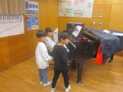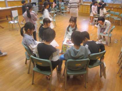 星空の様子を思い浮かべながら打楽器を使って合奏します。